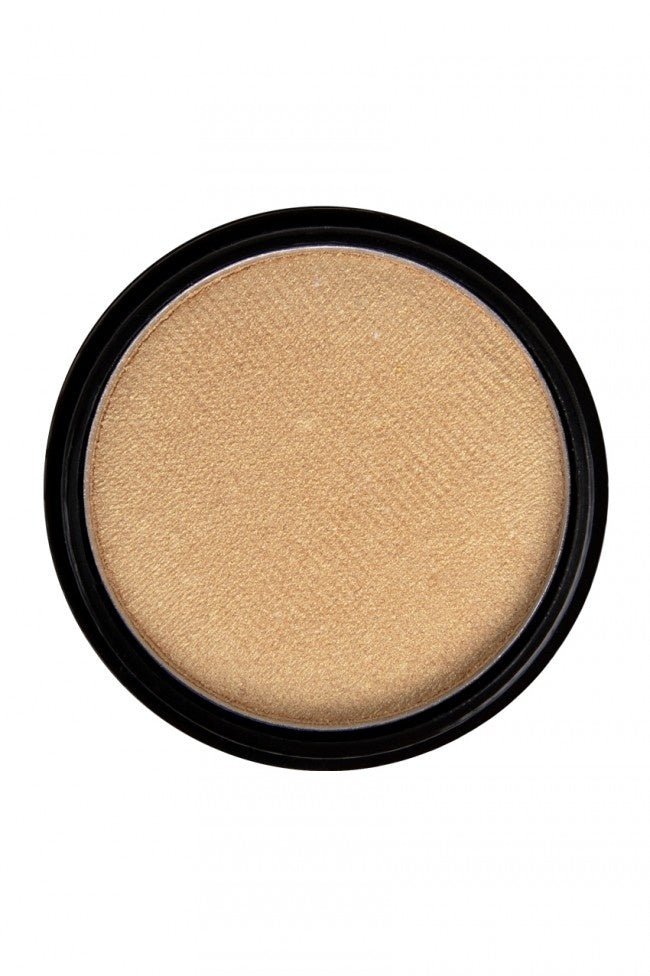 Appliquer la poudre directement sur la peau ou par-dessus le maquillage à l'aide d'un pinceau kabuki. Nous recommandons d'utiliser les poudres pressées PXP à sec, notamment sur le Schmink jaune métallisé doux PXP. Remarque : si tu utilises un pinceau ou une brosse humide, les poudres ne peuvent pas être utilisées à sec.