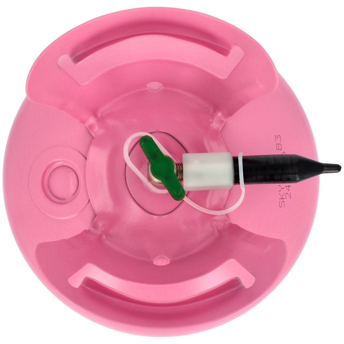 2. Appuie sur le bec noir, le ballon se remplit d'hélium. Relâche le bec verseur pour arrêter le remplissage.
