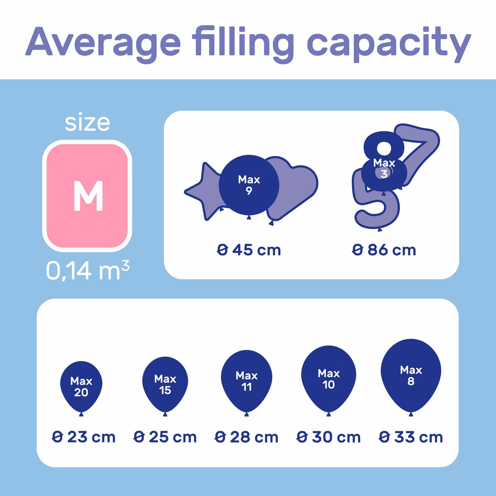 Chaque centimètre de plus qu'un ballon affecte sa capacité. Les réservoirs d'hélium sont basés sur des ballons de 25 cm, si tu utilises des ballons de 30 cm, par exemple, tu ne peux obtenir que la moitié de la quantité du réservoir d'hélium.