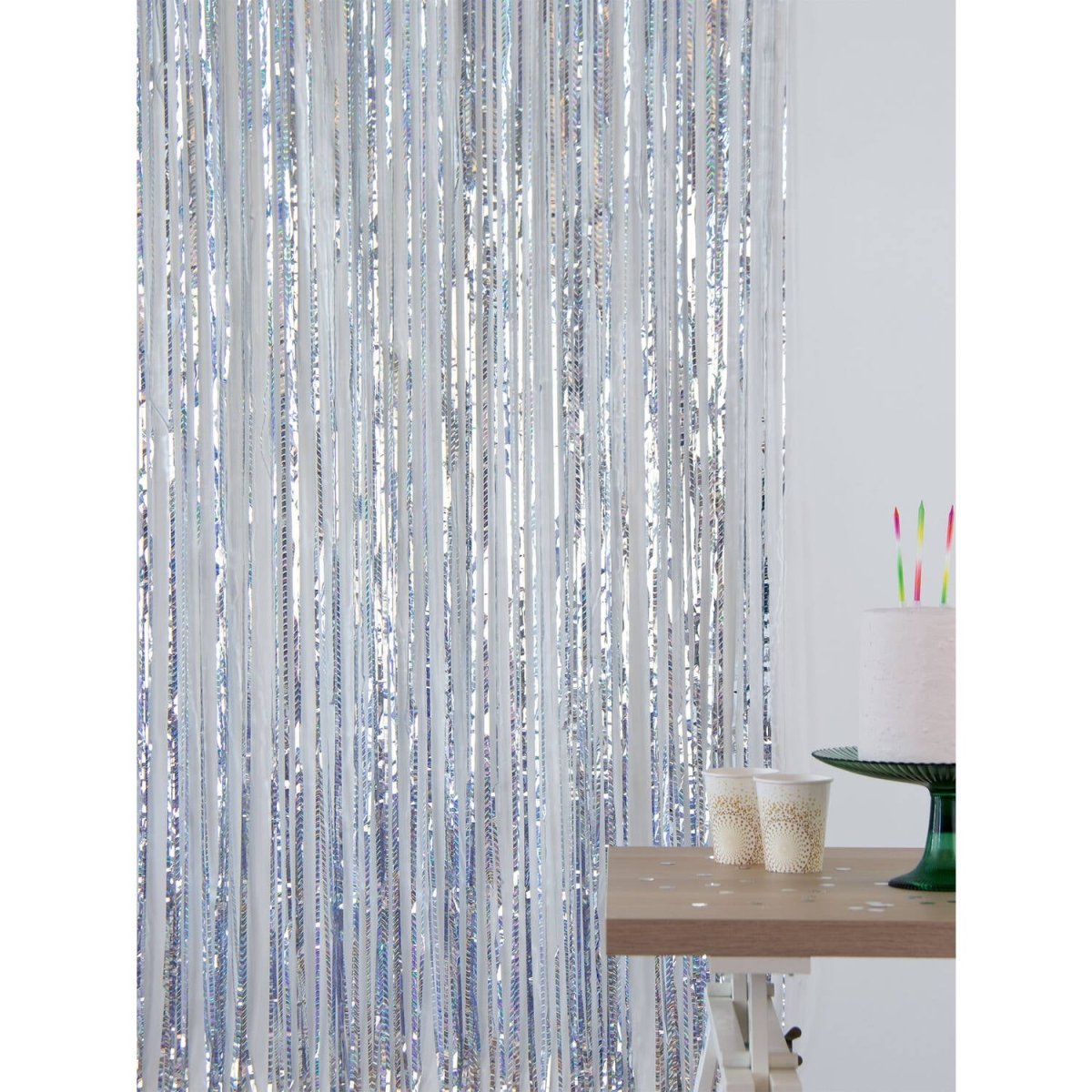 Une entrée cosmique. Rideau de fête - rayon laser argent - 1 x 2 m. Contenu : 1 rideau de fête. À utiliser par exemple lors des fêtes/occasions suivantes : Anniversaire, Fête à thème. Un rideau de fête argenté scintillant avec une sorte d'effet rayon laser. Amusant comme rideau de porte, mais aussi très approprié comme toile de fond pour des photos inoubliables. Grâce à la bordure adhésive pratique, ce rideau de fête est facile à accrocher. Cet article est fabriqué en feuille d'aluminium.