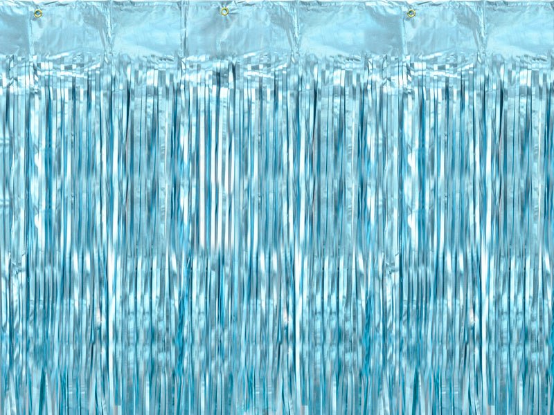 Contenu : Rideau de fête de couleur bleu métallique, largeur environ 90 cm, hauteur environ 250 cm.