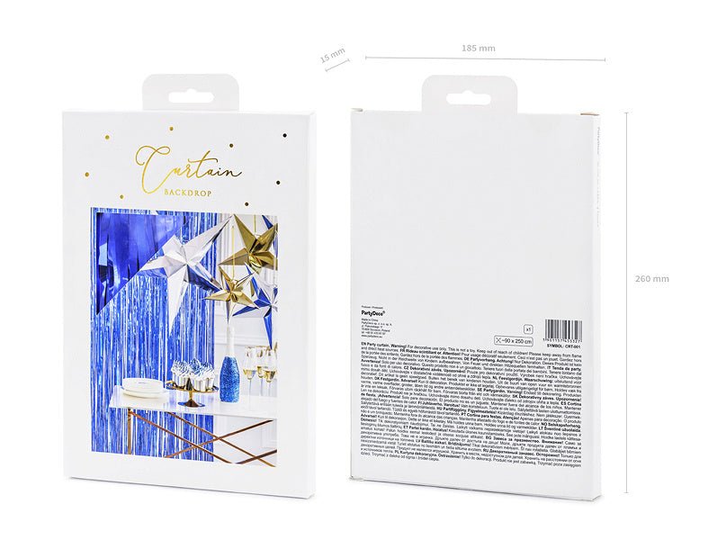 Contenu : Rideau de fête, bleu, largeur environ 90 cm, hauteur environ 250 cm.