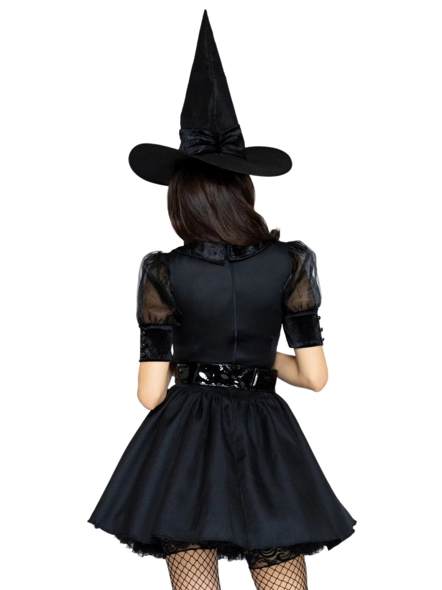Prépare-toi à jeter le sort avec ce déguisement de sorcière 3 pièces de Leg Avenue ! Ce costume comprend une robe d'inspiration vintage avec un corsage en velours, un col, une large ceinture et un chapeau assorti. C'est le costume parfait pour Halloween, les fêtes à thème ou lorsque tu veux créer un look mystique et sexy ! 🌙🎃