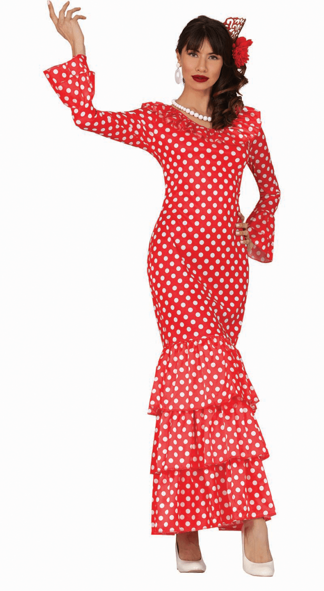 Robe espagnole Flamenco Blanc à pois