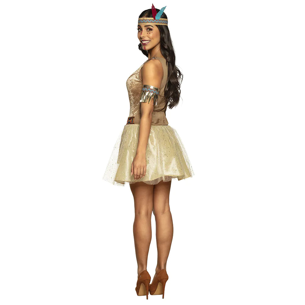 Ce magnifique costume adulte Bright Hawk est la tenue parfaite pour toutes les femmes qui veulent se déguiser pendant le carnaval ou une soirée déguisée mais qui veulent être élégantes. Ce joli déguisement ludique se compose d'une jolie robe courte en tissu doux avec une jupe en tulle et un pagne marron décoré d'un motif indigène, d'un bracelet de couleur or avec des franges et, pour compléter la tenue, d'un bandeau avec des plumes.