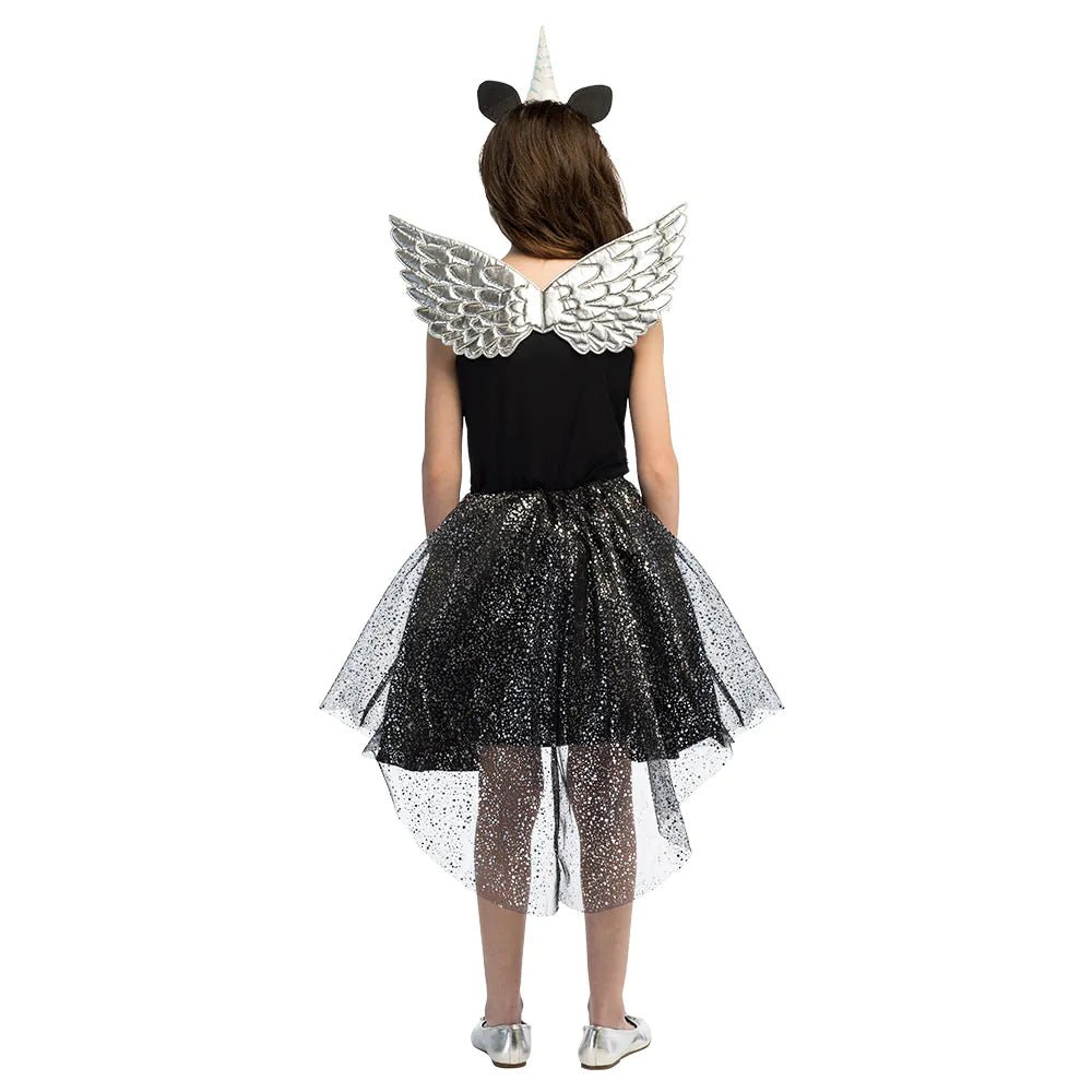Magique et mystérieuse ! Cette robe licorne pailletée pour enfants est livrée avec des ailes et un diadème avec corne. Costume idéal pour les filles imaginatives lors d'un carnaval, d'une fête costumée ou d'Halloween.