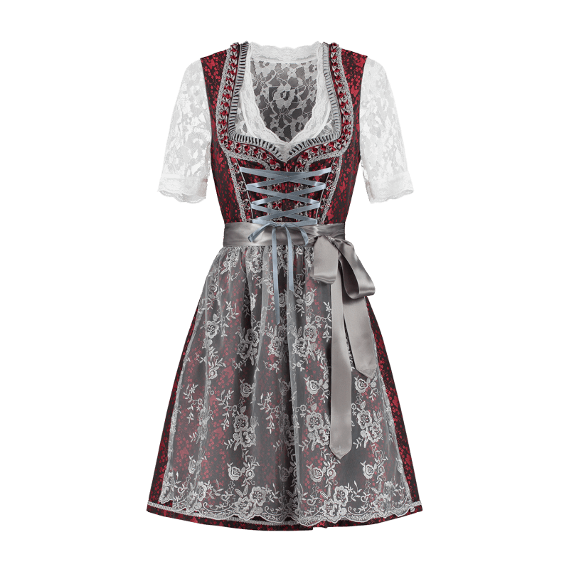 Robe Dirndl rouge argentée Oktoberfest 2 pièces