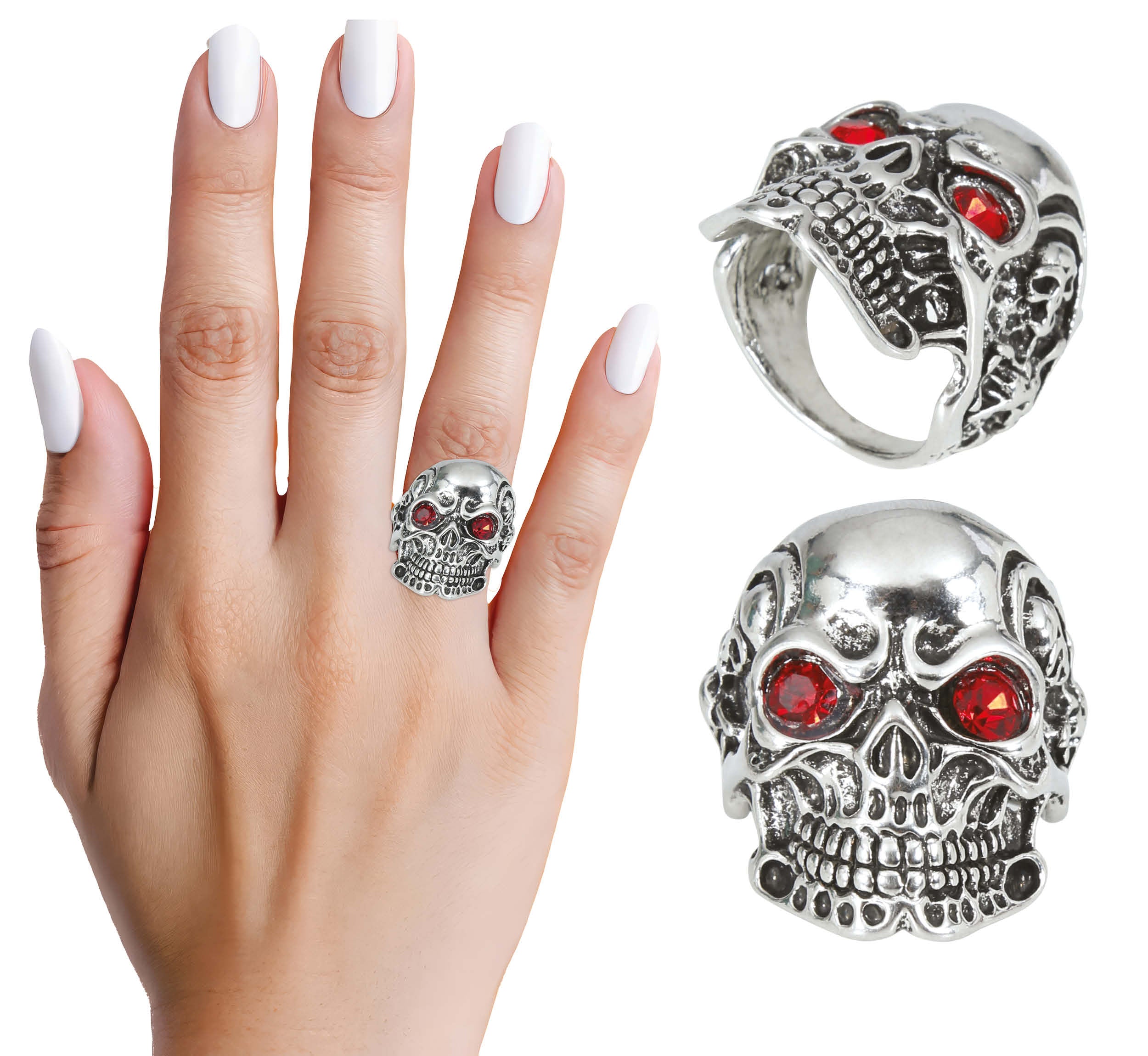 Bague en argent rouge tête de mort