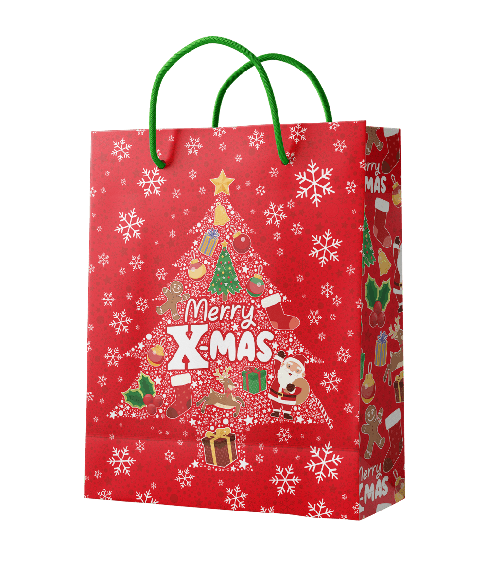 Le sac est fabriqué en papier et en plastique robustes, ce qui le rend léger mais suffisamment durable pour être utilisé plusieurs fois. Parfait pour offrir des cadeaux pendant les fêtes.
