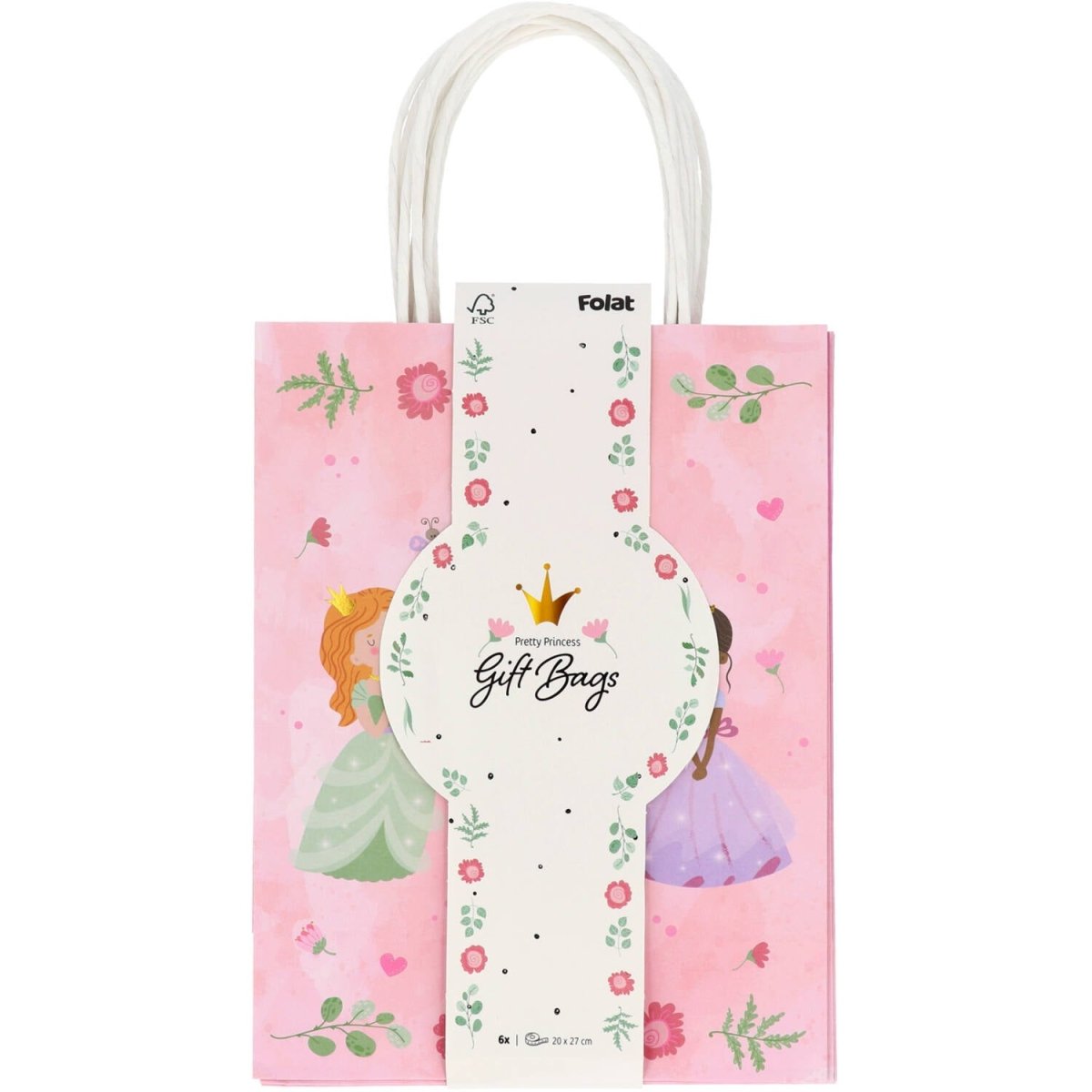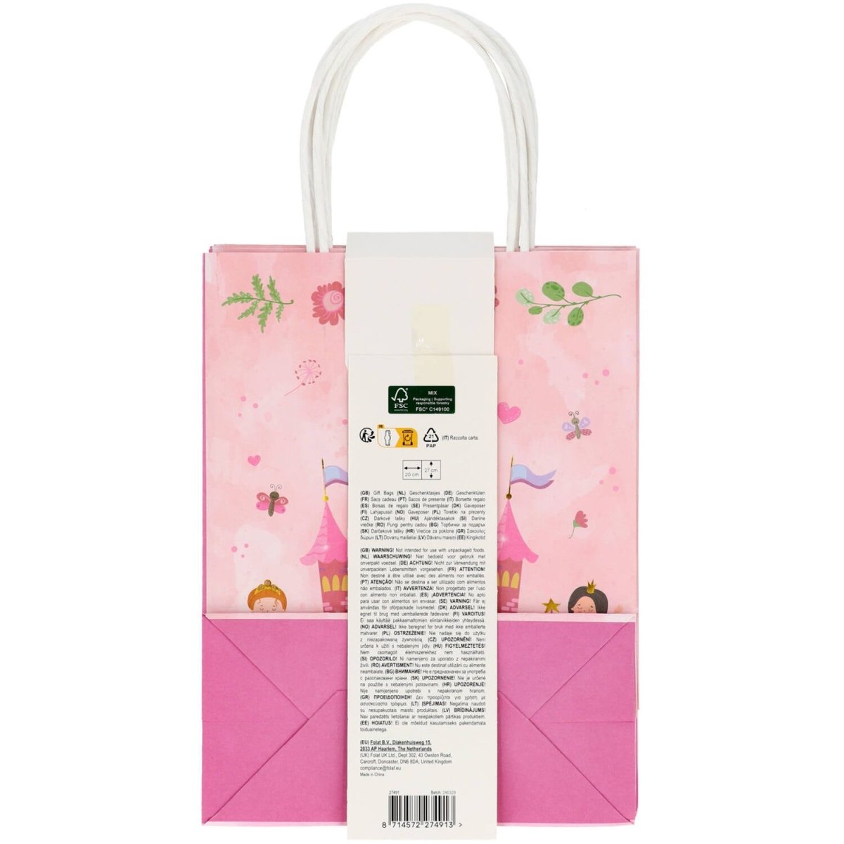 Pour les cadeaux royaux. Sacs cadeaux - Pretty Princess - 20 x 27 cm - 6 pièces. Contenu : 6 sacs cadeaux. À utiliser par exemple lors des fêtes/occasions suivantes : Fête d'enfants, Anniversaire. Jolis sacs cadeaux mesurant 20 x 27 x 10 cm. Rose tendre avec d'un côté deux princesses et le texte "HAPPY BIRTH DAY" et de l'autre côté un château avec deux princesses. Poignée comprise, les sacs mesurent environ 37 cm de haut. Avec des détails dorés qui brillent vraiment grâce à la technique de marquage à chaud utilisée. Ces sacs cadeaux appartiennent à la collection Pretty Princess de Folat. Cet article est fabriqué en papier.