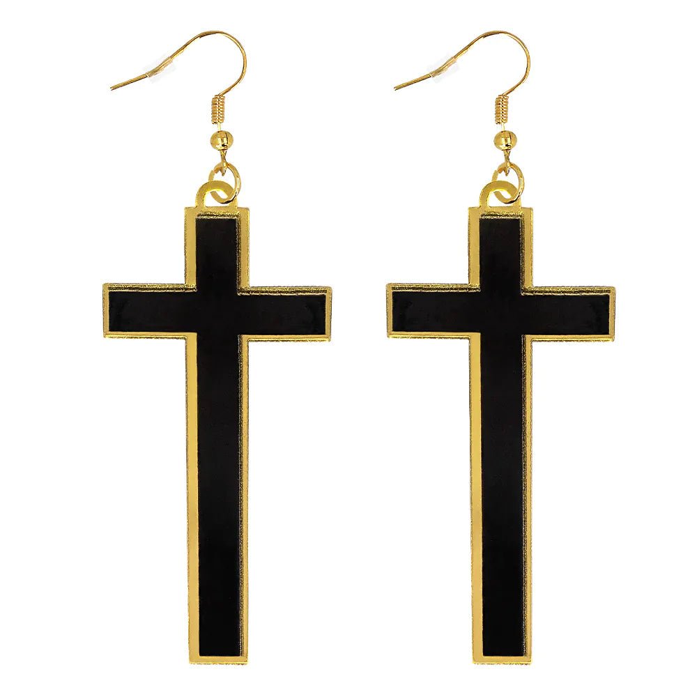 Assiste à ta prochaine fête en tant que sainte ou nonne pécheresse avec ces boucles d'oreilles en forme de croix qui attirent l'attention. Une touche finale classique pour le carnaval, une mauvaise fête ou une soirée déguisée.
