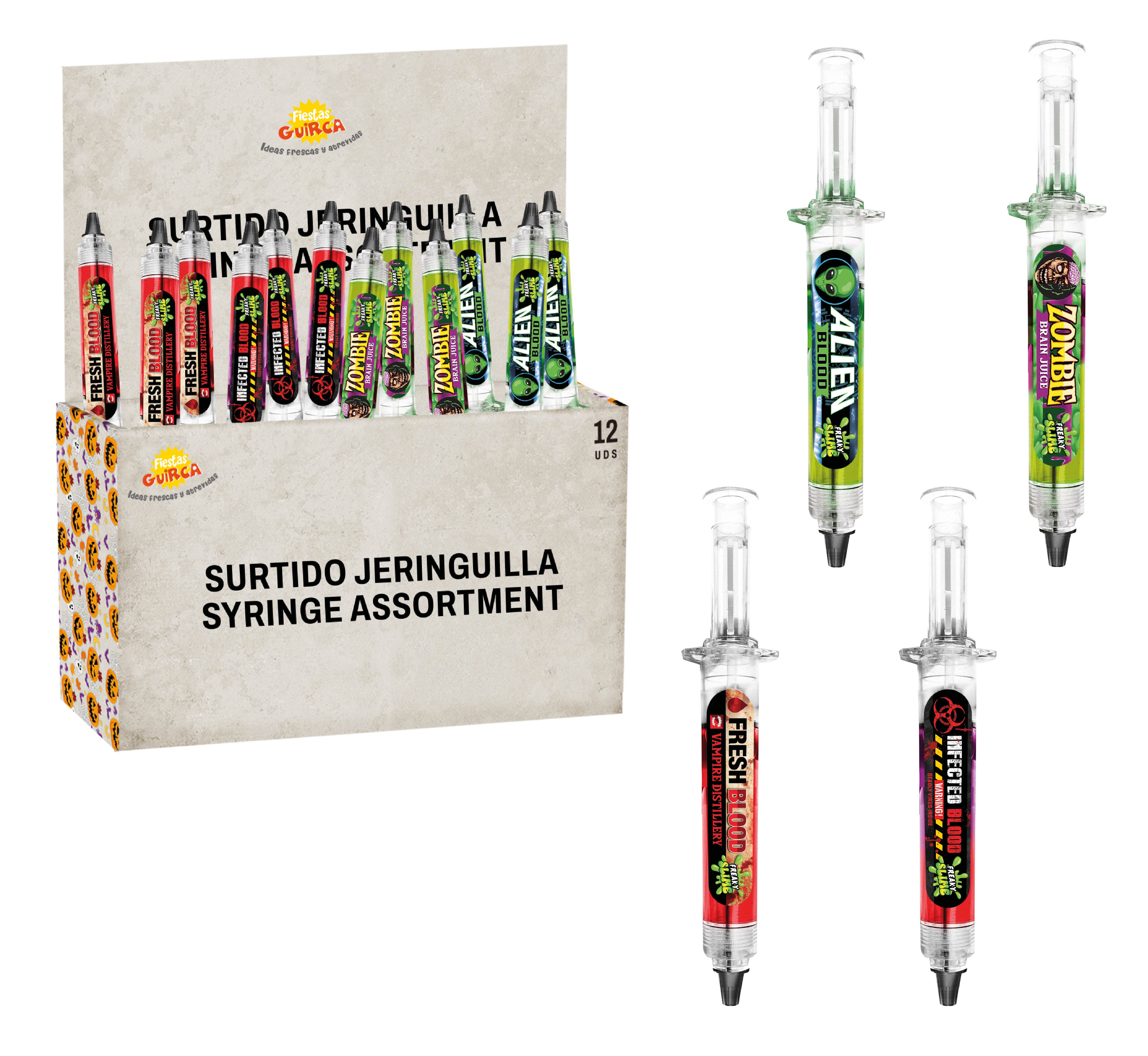 Les seringues sont fabriquées en PVC léger et peuvent être utilisées en toute sécurité. Un accessoire accrocheur et terrifiant pour une expérience d'Halloween à glacer le sang.