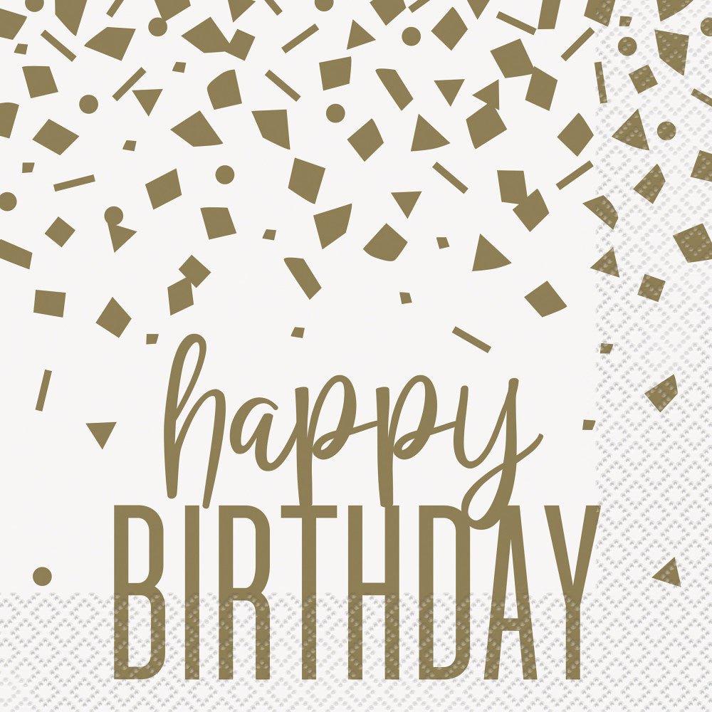Serviettes d'anniversaire Happy Birthday Gold Confetti 16pcs