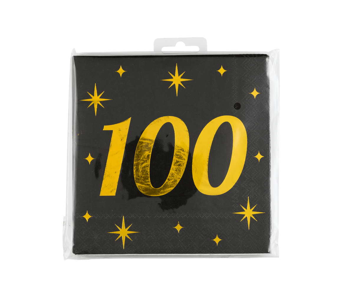 Ces serviettes de table de fête très classes - 100 ne sont pas seulement pratiques, elles sont aussi très amusantes pour décorer de façon festive une table à l'occasion d'un 100e anniversaire. Ces serviettes (17 x 19 cm) sont au nombre de 16 par paquet. Les serviettes de table classy sont en outre parfaites pour être combinées avec les décorations de fête de la collection classy!