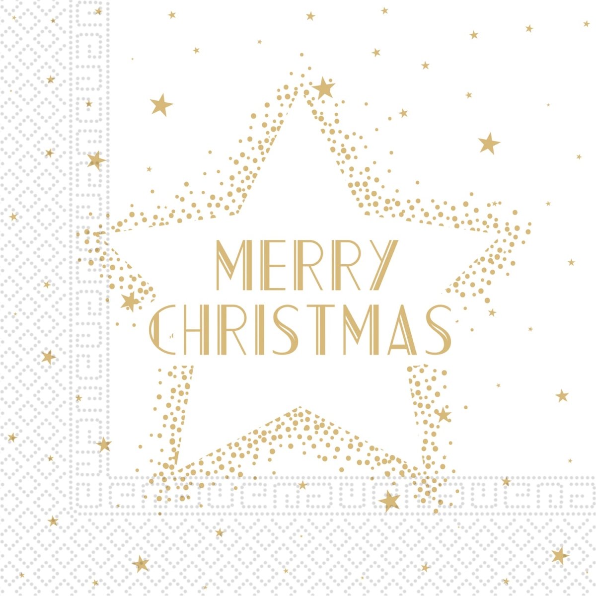 Serviettes de table de Noël Or blanc Joyeux Noël 33cm 20pcs
