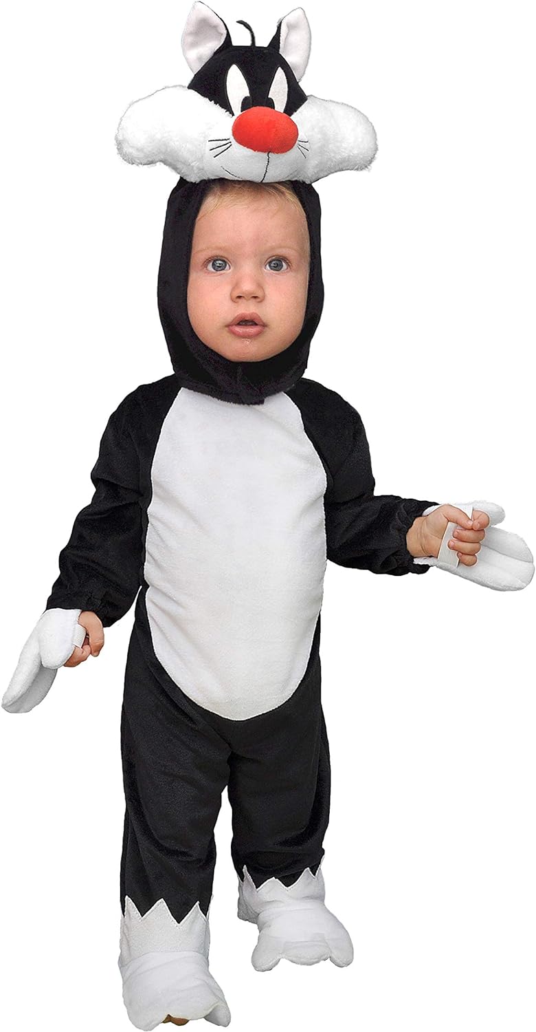 Ce déguisement de Silvestro le chat pour bébé est une tenue joyeuse et reconnaissable aux couleurs noires et blanches. Le personnage est connu des Looney Tunes et rend ce costume encore plus amusant pour le carnaval, les soirées déguisées ou une séance photo ludique.