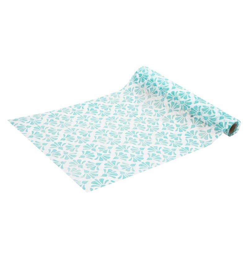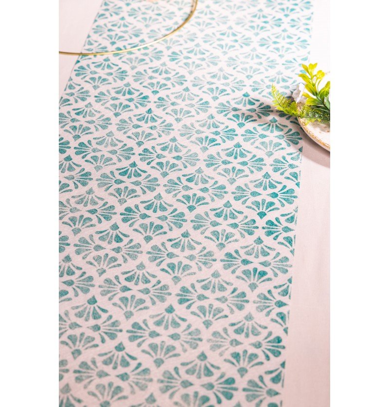 Chemin de table bleu Baroque 5m