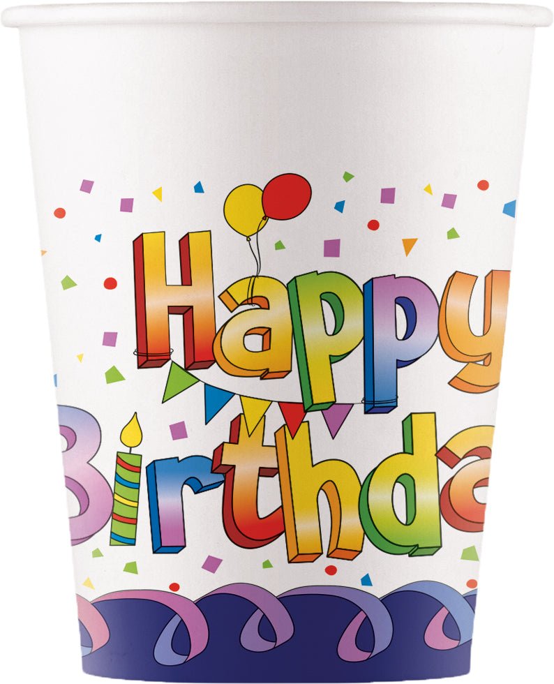 Gobelets Happy Birthday colorés 200ml 8pcs