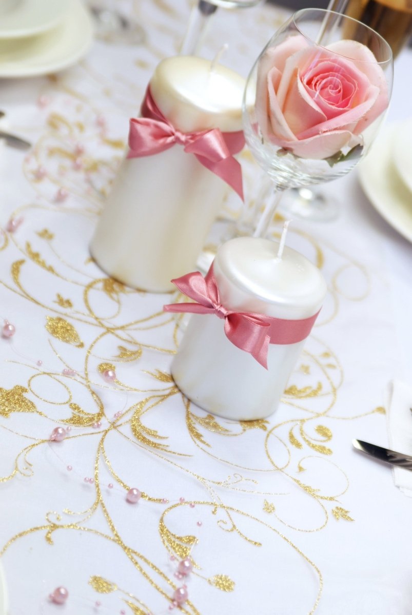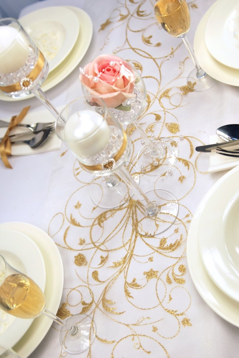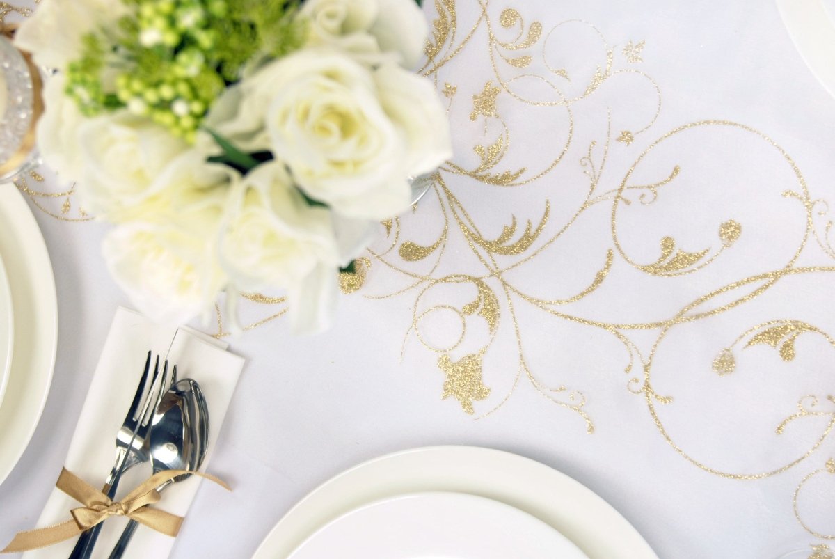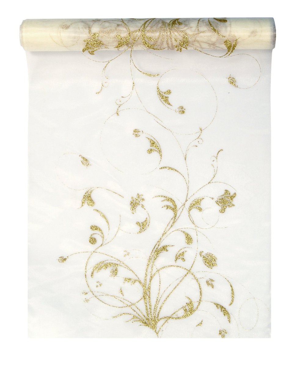 Vanilla Creme Organza Fabric Gold Flowers 36cm 9m