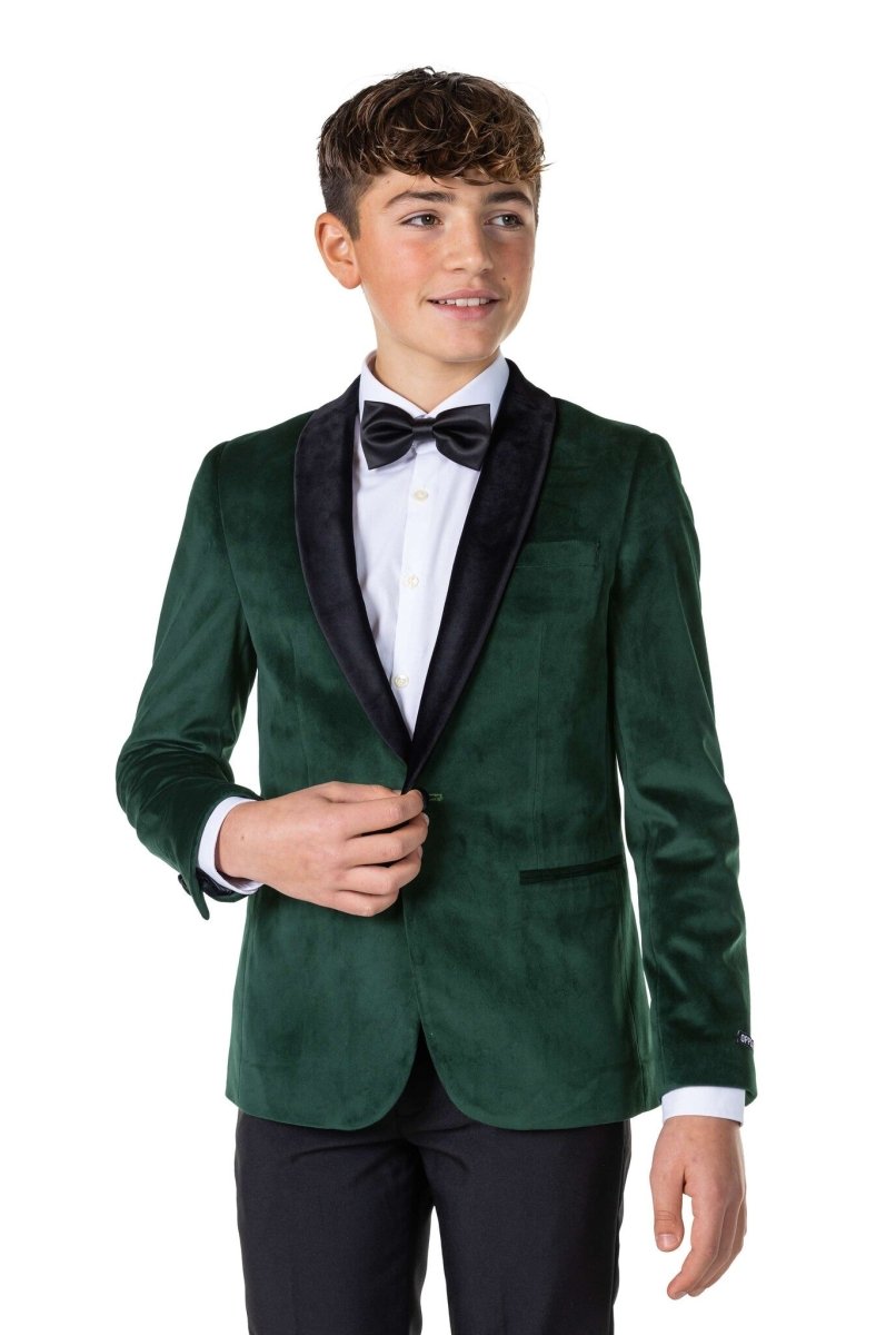 Ton garçon a-t-il besoin de ressembler à un gentleman digne de ce nom ? Le OppoSuits blazer Deluxe Rich Green Dinner Jacket est un excellent moyen de donner à ton adolescent un look et un charme vintage avec des fonctionnalités modernes. Fais en sorte que tes enfants soient superbes dans ce blazer Deluxe sophistiqué.