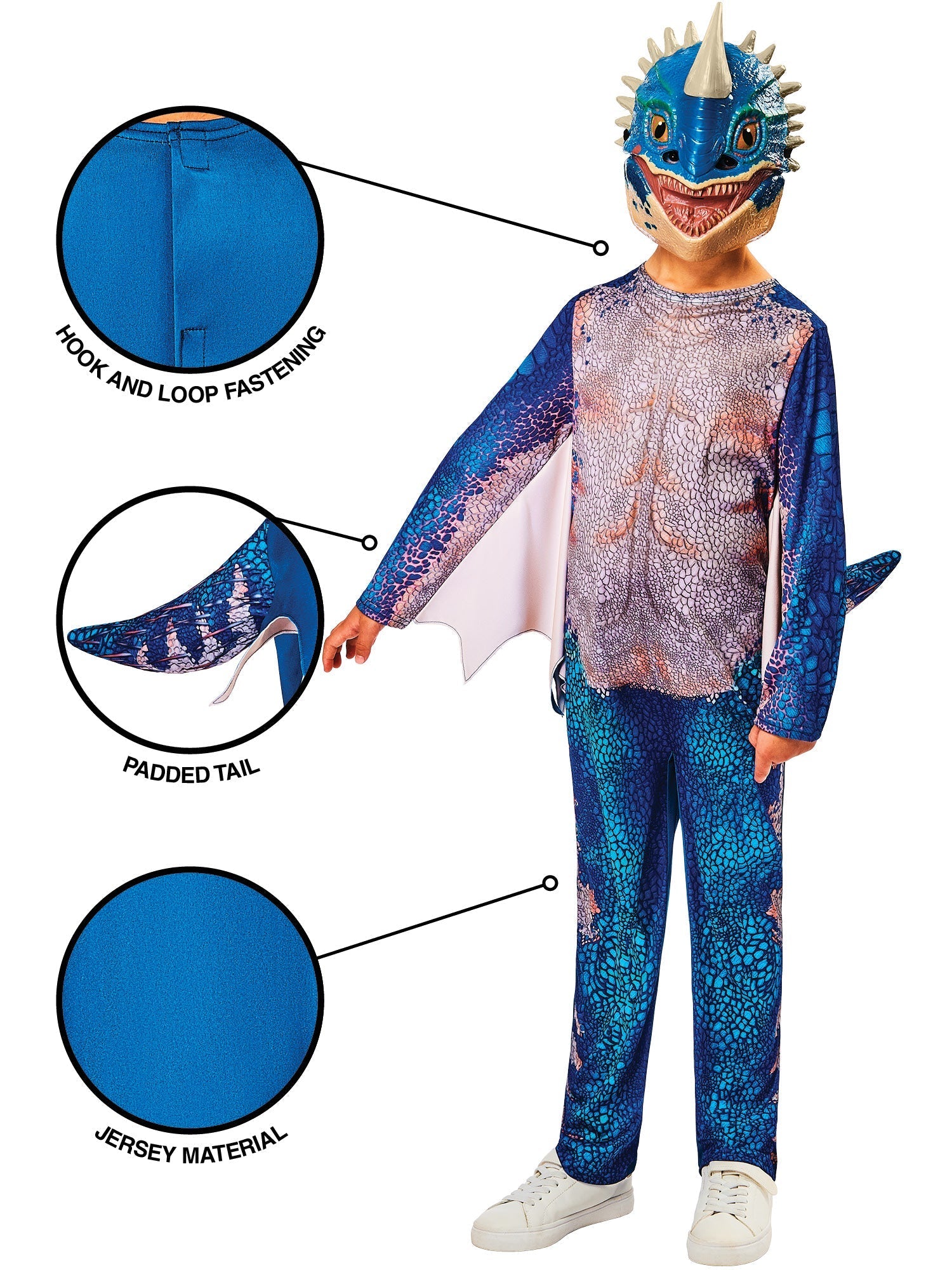 Vole au-dessus des montagnes en incarnant Nadder, le dragon emblématique de la toute nouvelle adaptation en prises de vue réelles de How to Train Your Dragon! Ce costume détaillé comprend une combinaison imprimée de haute qualité, des ailes attachées, une queue et un masque assorti, agrémenté de nombreux détails en 3D. Parfait pour s'envoler dans les cieux comme un vrai dragon.