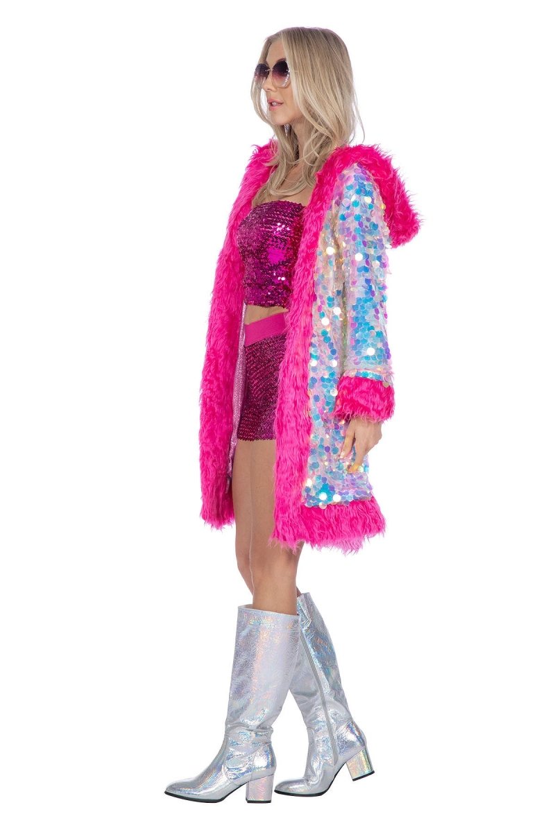 Veste holographique longue avec paillettes pour femmes