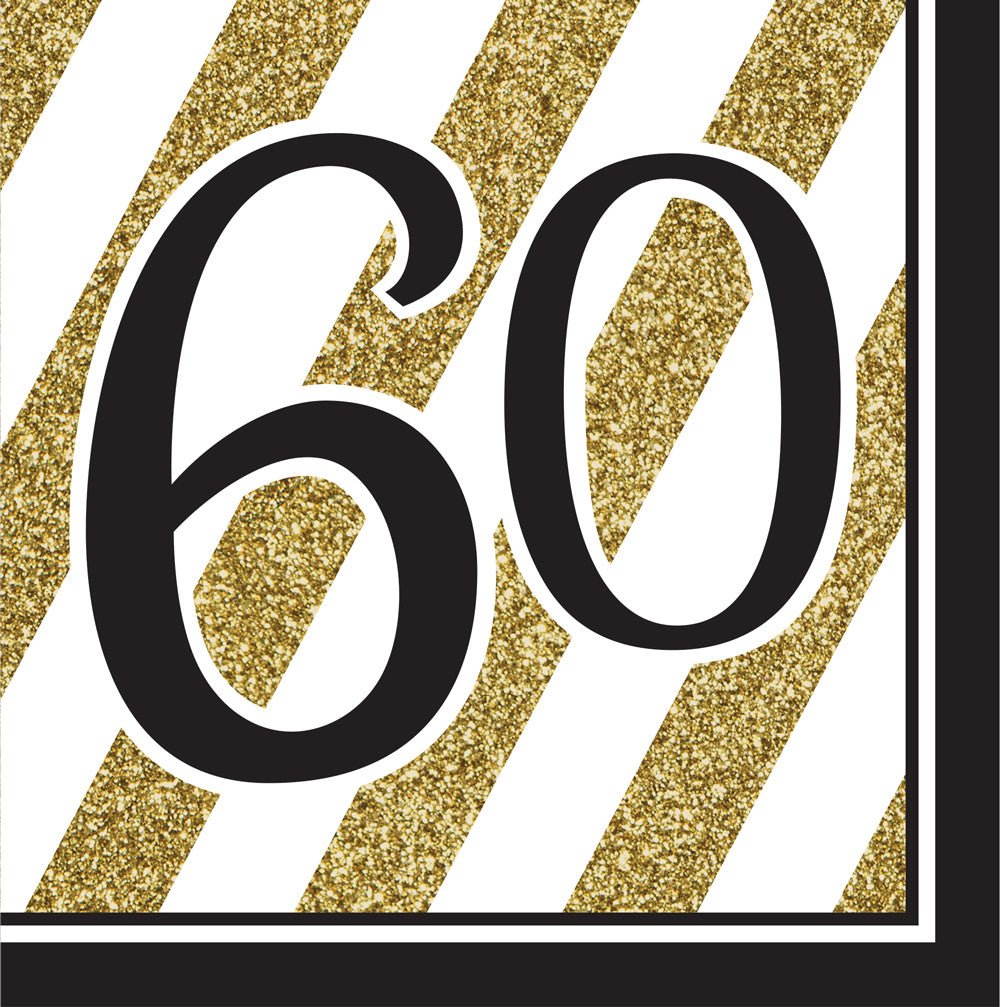 Serviettes de table noires et dorées 60 ans 33cm 16pcs